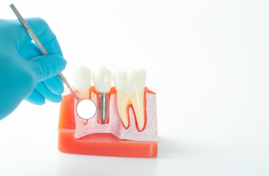 インプラントはあごの骨に直接固定するのでずれにくく、しっかり噛めるというメリットがあります。反面、手術が必要であること、ケアがしっかりできないと状態が悪化しやすいというデメリットもあります。